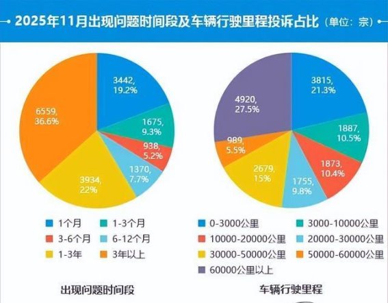 从问题出现时间段及行驶里程分析,购车12个月内出现问题的投诉占比回升,环比提升5.9个百分点,已超过总量四成;购车三年以上投诉占比环比下降6.8个百分点。行驶里程在3,000公里以内的投诉占比持续攀升,环比增加4.8个百分点,而行驶里程超过60,000公里的投诉占比下降5.2个百分点,说明新车阶段问题集中化趋势明显。能源类型方面,纯电动及插电混动车型投诉量明显增加,分别环比上涨26.1%和25.2%,而增程式车型投诉量下降31.4%,显示新能源车型在快速增长的也面临产品可靠性和服务管理的挑战。