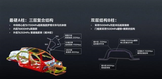 在安全方面,新蒙迪欧坚持“质量不妥协、安全不妥协、性能不妥协”,采用超强笼式车身,强化整体结构安全性。高强度钢占比达53%,A柱为1700MPa超高强度马氏体钢三层复合结构,B柱采用1500MPa双层冲压钢,显著提升抗变形能力和车身刚性。多重结构优化不仅保障了碰撞安全,也为动力性能充分发挥提供坚实基础,使用户在各种路况下都能安心驾驶。