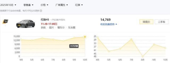 作为中型轿车市场中的一款重要车型,红旗H5燃油版自上市以来,凭借其独特的品牌魅力与出色的产品力,收获了大量消费者的喜爱。在2023年10月,红旗H5燃油版更是创造了14769辆的销量成绩,稳居中国品牌中型轿车市场的销量冠军。这一成绩证明了消费者对红旗H5的认可,也彰显了红旗品牌的强大实力。