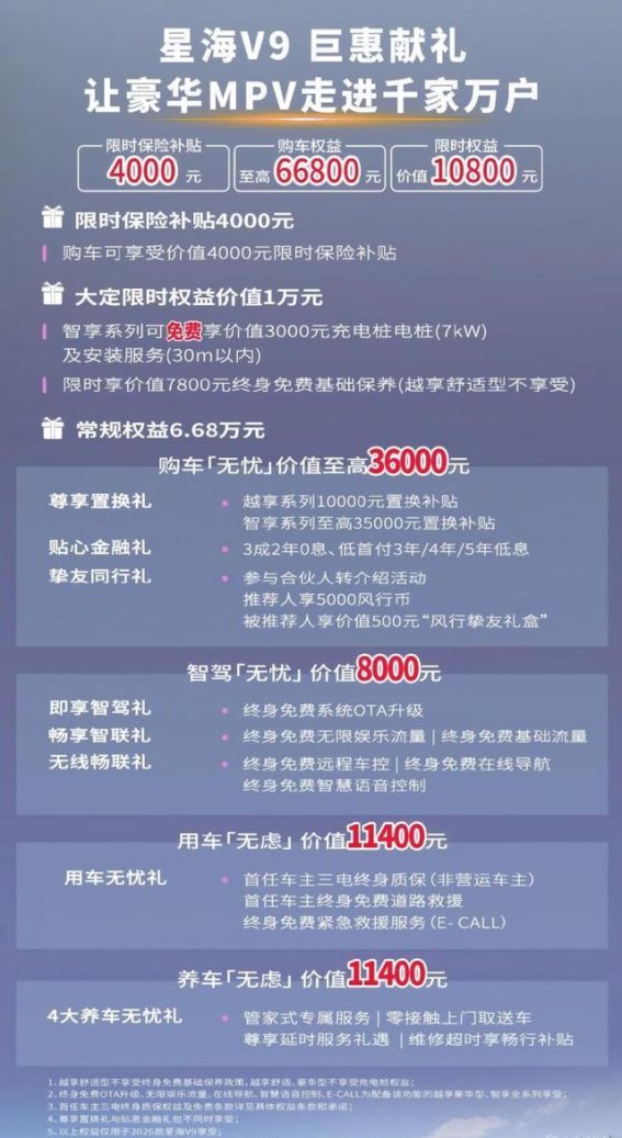 重点推出的星海V9作为一款中大型MPV,其出色的设计和强劲的动力性能吸引了不少消费者的关注。星海V9的车身尺寸达到5230/1920/1820mm,轴距更是达到3018mm,车内空间非常宽敞,适合长途出行及家庭聚会使用。此次优惠活动中,消费者购买星海V9可以享受到高达4000元的保险补贴以及至高66800元的综合购车权益。通过这一系列优惠政策,消费者能够以更为实惠的价格购买到这款高性能的MPV车型。
