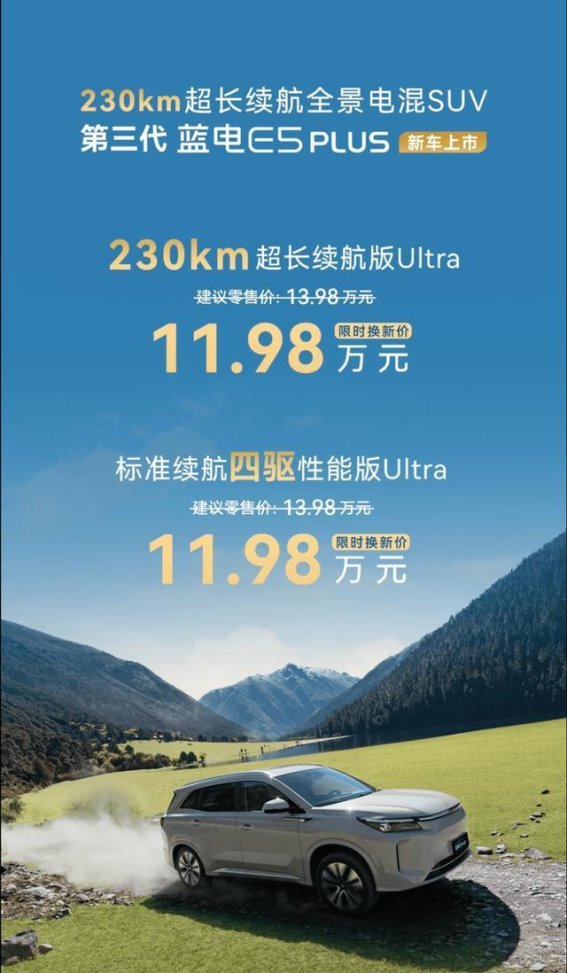 随着汽车行业的不断创新与进步,智能化与电动化已经成为了未来出行的主旋律。12月3日,第三代蓝电E5 PLUS正式上市,凭借其强大的续航能力、先进的动力系统以及全新的智能体验,迅速吸引了消费者的目光。此次新车共推出两款车型,售价分别为13.98万元和限时换新价11.98万元。在外观、动力、续航以及智能化配置等方面的全面升级,使得这款新车成为了市场上备受瞩目的焦点。