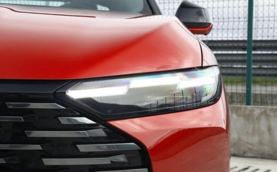 从外观设计来看,新款蒙迪欧基本延续了2025款车型的整体造型,车头部分依旧采用了经典的八边形前格栅,不过内部的矩阵式风格镀铬装饰为前脸增添了更加精致的视觉效果。两侧大灯的造型发生了变化,从原有的分体式大灯变为一体式设计,搭配三段式日间行车灯带,前包围也进行了相应的造型调整,整个车头更显运动感。