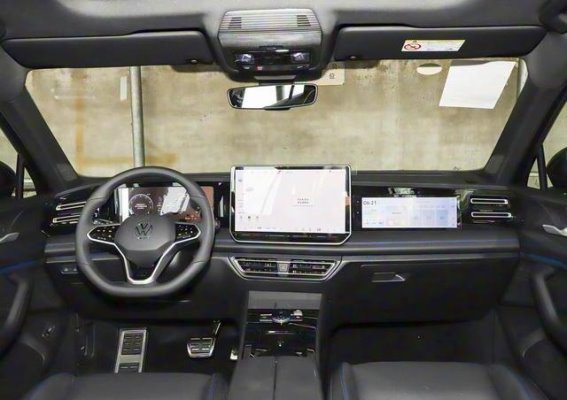 进入车内,2026款途观L Pro领航版的座舱布局体现了大众最新的设计哲学。中控台采用了非对称设计,搭配大面积软性材料包裹和碳纤维纹理装饰,质感十足且运动氛围浓郁。15英寸悬浮式中控屏与11.6英寸副驾娱乐屏组成的双屏系统,与全系标配的10.3英寸全液晶仪表共同组成了一个三屏联动的系统,操作简便且反应迅速。车载系统搭载了高通8155车规级芯片,支持5G网络与双音区语音识别,智能化体验可谓是前所未有。