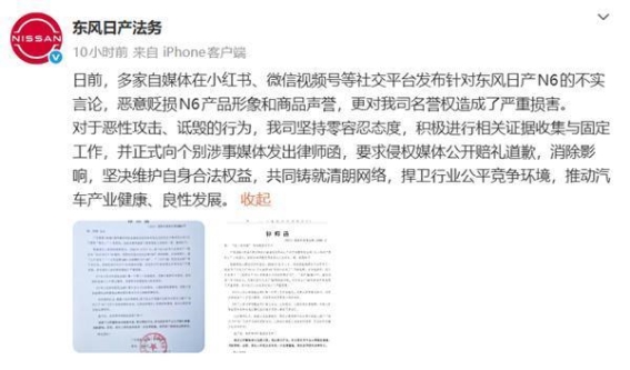 东风日产通过律师函的方式成功维护了N6车型的声誉,展现了其在面对网络恶意言论时的果断和决心。在随着网络平台监管的不断加强,企业与消费者之间的关系将更加透明和公平。而品牌形象的维护,除了依靠广告宣传和公关手段,法律维权也将成为企业在竞争中的重要武器。