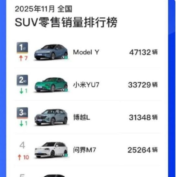 特斯拉Model Y的回归,成为了YU7的最大竞争对手。特斯拉调整了出口策略,将更多的现车投入国内市场,从而助力Model Y重新夺回了“最畅销纯电SUV”的头衔。根据11月的销量数据,Model Y以47132辆的零售销量强势反弹,重新回到了榜首的位置,显示了其强大的市场吸引力和影响力。这一局面也让小米汽车深刻意识到,尽管YU7表现不俗,但在强者如林的新能源车市场中,依然面临着巨大的挑战和竞争压力。