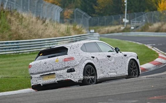 从曝光的谍照来看,虽然车身部分被伪装,但一些设计细节仍可窥见端倪。车头的前脸设计没有采用传统的封闭式格栅,而是呈现出一块内凹的区域,具体细节尚未完全揭开,但可以看出,宾利对这款车的前脸设计进行了重新的审视与创新。大灯组的位置被伪装覆盖,但从现有的画面来看,大灯组经过熏黑处理,且形状也不同于宾利以往的圆形分体式设计,预示着新车将拥有更具现代感的前脸造型。车头下包围部分则配备了贯穿式进气口,并使用黑色蜂窝状格栅装饰,这种设计不仅增强了车头的层次感,也为整车增添了不少运动气息。