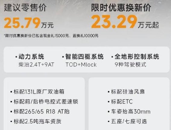 12月11日,二代哈弗H9穿越版正式上市,官方指导价为25.79万元,现优惠价为23.29万元起。这款新车的发布,引发了越野车迷的广泛关注,尤其是长途越野爱好者。与传统越野车不同,穿越版通过针对性改款,精准聚焦了长途穿越的核心需求。在动力、续航和操控等方面的全方位升级,使其成为越野车市场中的新宠,尤其是对于那些喜爱探索未知、挑战极限的用户来说,它无疑是一次重大的选择。