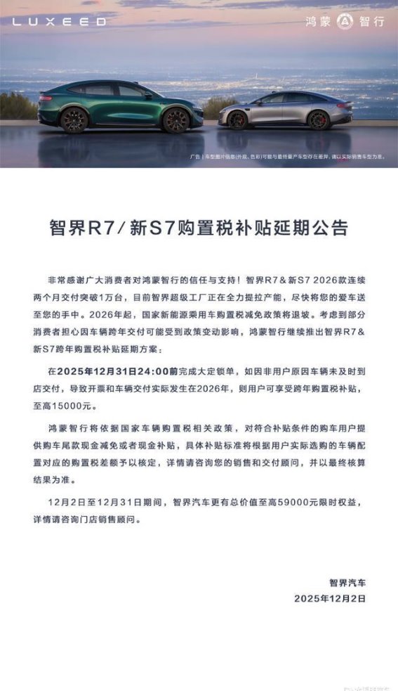近日,智界品牌宣布,智界R7和新款S7的购置税补贴政策将延续至2025年12月31日,最高可享15000元的补贴。此举无疑是为了进一步激励消费者的购车热情,同时也显示出智界品牌在电动汽车领域的坚定决心。官方表示,智界超级工厂正在加速提升产能,力求在最短的时间内将车辆交付给用户,推动品牌的持续增长。目前,智界品牌已经连续两个月的交付量突破了1万台,显示出其强劲的市场表现。