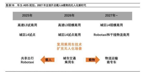 多家企业已公布具体的商业化时间表,加速布局L3及Robotaxi业务。小鹏汽车计划于2026年推出三款Robotaxi,采用不依赖高精地图的纯视觉方案,复用量产车智驾芯片与软件架构。华为智能汽车解决方案BU CEO靳玉志表示,力争2026年实现高速L3规模商用及城区L4试点,并计划在2027年开启全面无人化载人与载物新时代。供应链企业同样动作频繁,地平线机器人与哈啰合作,其首款前装量产Robotaxi计划2026年量产,并目标2027年部署超5万辆;Momenta预计2025年推出前装量产Robotaxi方案;元戎启行计划2025年底落地Robotaxi业务,实现与量产车共用技术框架,通过数据实时迭代优化系统性能。