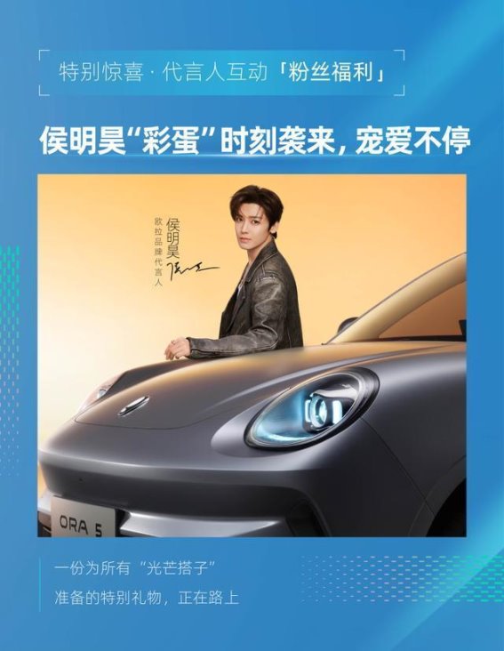 第四个亮点是欧拉品牌代言人侯明昊的惊喜彩蛋。知名青年演员侯明昊将在发布会中带来特别环节,其具体互动形式尚未公布,但从海报中“宠爱不停”的描述来看,这一环节预计将为现场观众和潜在用户带来更多惊喜与互动体验。代言人的参与不仅提升了发布会的观赏性和话题性,也拉近了品牌与年轻消费群体之间的情感距离。通过娱乐化的互动和创意环节,欧拉品牌试图增强用户的情感认同感和参与感,从而形成更深层次的品牌影响力,增强消费者对产品和品牌的好感与忠诚度。