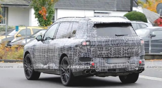 车尾部分目前谍照仍有厚重伪装,但四出的排气管已经清晰可见。这一设计体现了宝马在动力系统方面依旧与国产车型保持差异化。相比许多国产豪华SUV依赖涡轮小排量或电动化技术来提升性能,宝马X7依然保留强劲的发动机选择,这对于追求传统驾驶体验的高端用户来说是不可替代的优势。外媒普遍推测,全新X7将提供直列六缸和V8发动机版本,并推出插电式混动车型。直列六缸版本预计作为主销车型,而V8则用于顶配版本,满足用户对极致动力的追求。插电式混动版本可能采用类似全新M5的动力结构,在提升功率的同时兼顾能效与操控性能。