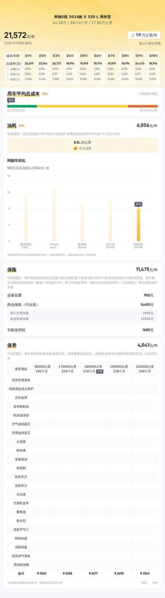 从用车成本来看,奔驰S320L的年均综合用车成本大约在2.2万元左右。虽然具体的费用会根据实际使用情况有所波动,但相比新车价格的高昂,二手车所带来的性价比优势无疑让人心动。而且,在二手车市场中,这款车的保值率保持在26.41%左右,意味着即使是二手车,依然能够保值并具有一定的投资价值。