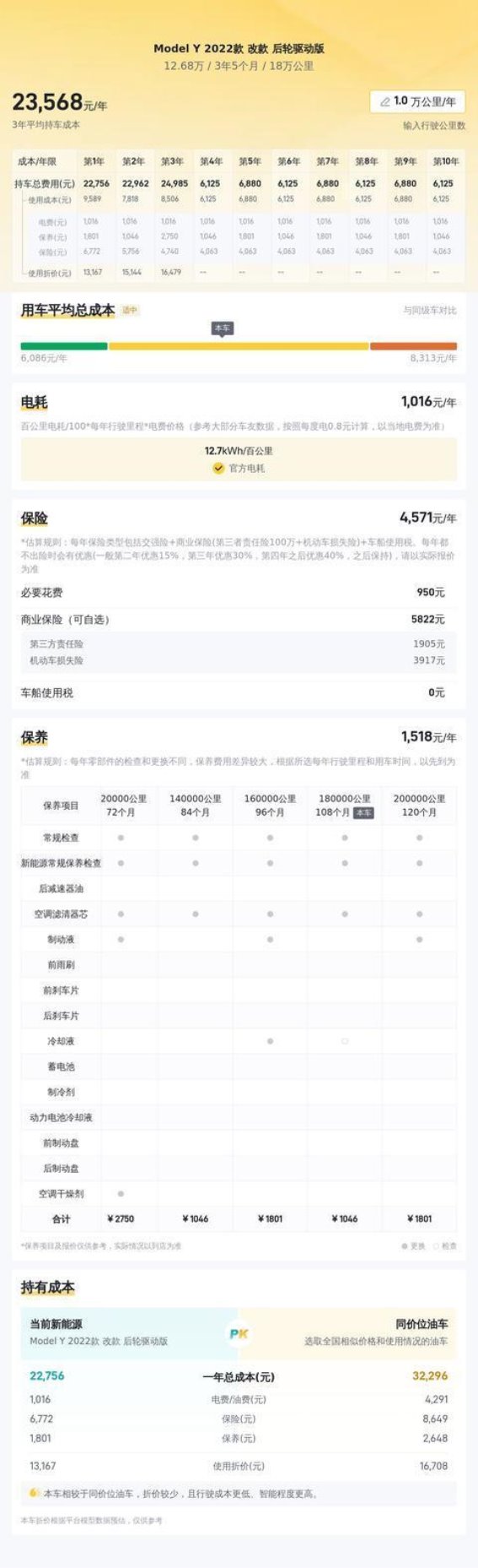 在计算用车成本时,二手Model Y的综合费用大约为每年2.4万元。这包括了保险、电费、保养等日常支出。相较于传统燃油车,电动汽车的日常维护成本较低,因为它们的机械结构更为简单,且需要更少的常规更换部件。随着车辆使用年限的增长,电池的健康监测和维修可能需要更多的投入。保险费用也会根据车主的个人情况而有所不同,但总体来说,电动汽车的用车成本还是相对可控的。