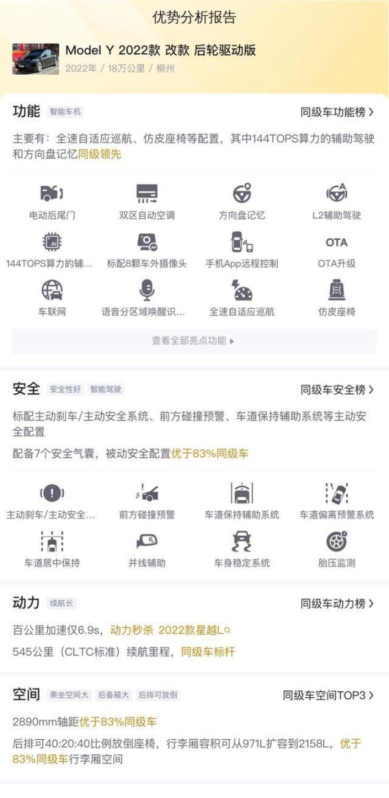 总体来说,购买这辆二手2022款改款Model Y后轮驱动版,对于那些预算有限但又希望享受高性能电动汽车的消费者来说,仍然是一个非常吸引人的选择。尽管这辆车的行驶里程较高,但考虑到特斯拉的品质和电动汽车的独特优势,18万公里的行驶里程并不构成太大问题。只要在购买前进行充分的检查,确保车辆的电池和动力系统没有问题,这款车依然能够带来与新车相似的驾驶体验。而在价格方面,相较于新车的高昂售价,12万元的价格无疑为购车者提供了一个高性价比的机会。