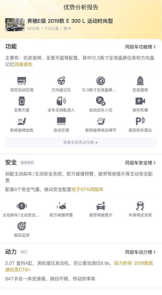 对于这款奔驰E 300 L 运动时尚型,优势十分明显。价格相对于新车来说非常有吸引力,仅需不到20万元就可以拥有一辆价值50万元以上的豪华车。这款车的车况非常好,行驶里程为11万公里,车辆的保养情况和车况都保持得相当不错。这款车的配置非常丰富,驾驶体验也非常出色,完全满足了商务和家庭双重需求。