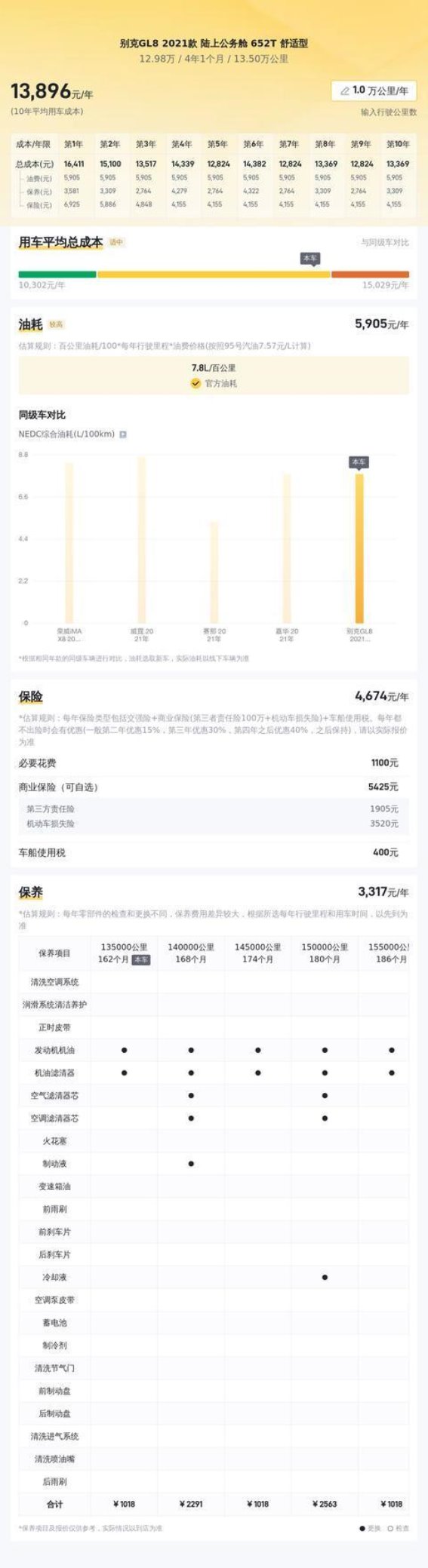 从市场行情来看,别克GL8 2021款陆上公务舱652T舒适型的二手车价格一般在13.12万至16.16万之间,而这辆车的报价为12.98万元,价格明显低于市场均价。对于一辆行驶了13.5万公里的2021款车型而言,这样的价格无疑具备很高的性价比,特别适合预算有限的消费者。
