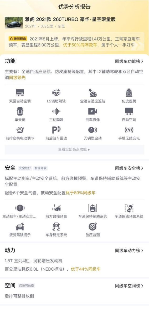 ,2021款本田雅阁 260TURBO 豪华·星空限量版无疑是一款非常适合家庭使用的中型轿车。它的配置丰富、动力经济且稳定,安全性与科技感也表现不俗。作为一款二手车,它以不到新车一半的价格,提供了极高的性价比,特别适合那些追求实用、注重经济性同时又不愿妥协于品质的消费者。如果你正在寻找一款家用代步车,雅阁 260TURBO 豪华·星空限量版绝对是一个值得推荐的选择。