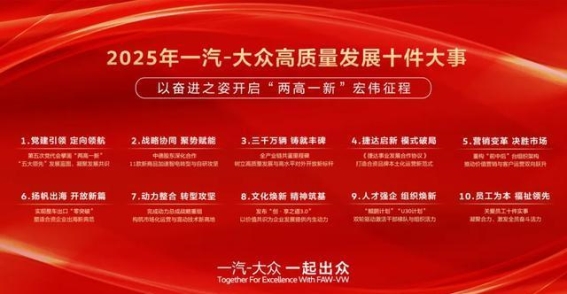 在全球汽车产业面临深刻变革的背景下,2025年,中国汽车行业积极迎接转型升级的挑战。作为中国汽车产业的重要组成部分,一汽-大众凭借其创新性战略布局和高质量发展,正逐步引领行业迈向新的高峰。从“汽车大国”向“汽车强国”的转变中,一汽-大众无疑是其中最为鲜明的推动者之一。2025年,这家企业通过十件大事的落地实践,不仅勾画出自身高质量发展的坚实底色,也为中国汽车产业的腾飞提供了强大的动力。
