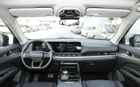 进入车内,领睿畅领型的内饰延续了外观的简洁设计风格,重点突出了实用性和舒适性。车内的双12.3英寸悬浮一体式屏幕成为了内饰的核心亮点,仪表盘与中控屏通过一体化设计,形成了一块宽大的视觉屏幕。车机系统搭载了TAI 4.0智能辅助系统,芯片采用高通骁龙8155,确保了车机操作流畅,用户体验更加顺畅。