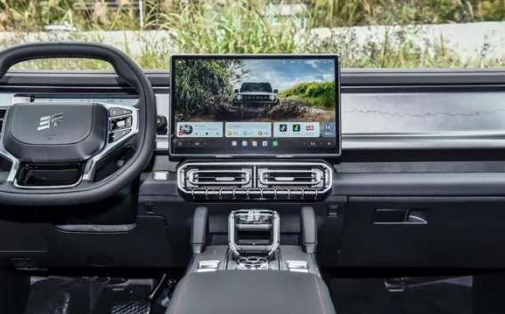 动力体验是这台车的另一大亮点。鲲鹏超能混动C-DM系统(1.5T发动机+混动专用变速箱)在市区通勤和越野场景都表现出色。经济模式下电机起步安静平顺,即使急加速也几乎没有噪音,车内交谈不受干扰;运动模式下瞬间爆发动力,80公里加速到120公里顺畅流畅,超车干净利落。三挡DHT变速箱可智能切换纯电、混动和发动机直驱模式,市区用纯电省钱,高速直驱高效,急加速时油电协同发力,切换过程几乎没有顿挫感。满载三位乘客及露营装备,爬连续上坡时动力依旧充沛,丝毫不吃力。油耗方面,市区拥堵约7.5L/百公里,高速匀速约6.2L/百公里,对于一台整备质量超2.1吨的硬派SUV,这样的数据表现相当出色。支持92号汽油,也降低了长期用车成本。