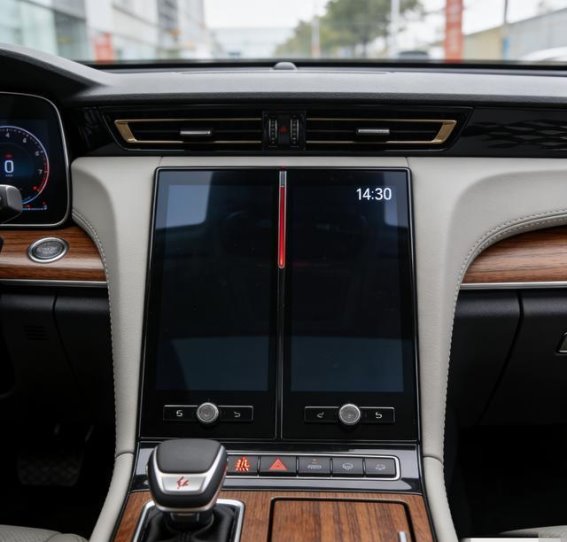 进入车内,红旗HS5的豪华感扑面而来。中控台采用大面积软性材质包裹,辅以木纹饰板和金属拉丝工艺,触感细腻,档次感十足。双联屏设计由12.3英寸全液晶仪表和12.3英寸中控屏组成,显示清晰,操作流畅。车机系统搭载红旗智联3.0,支持语音控制、导航和在线音乐功能,语音识别精准,“你好红旗”即可唤醒大部分功能,日常使用非常便捷。配置上,HS5几乎是诚意满满:全景天窗、电动尾门、前排座椅加热通风、自动空调、自适应巡航、车道偏离预警、主动刹车等功能全系标配,这些在同价位合资车型中通常需要中高配才能享受。座椅宽大厚实,填充柔软而支撑性良好,长途乘坐舒适,后排空间也很宽敞,175厘米的乘客坐进去仍有两拳以上的腿部余量和一拳多的头部空间,三名成年人并排坐也不显拥挤。不过,中控屏在强烈阳光下反光较明显,影响驾驶视线,车内储物空间有限,手机和钥匙等小物件没有合适的放置位置,这些细节略显遗憾。