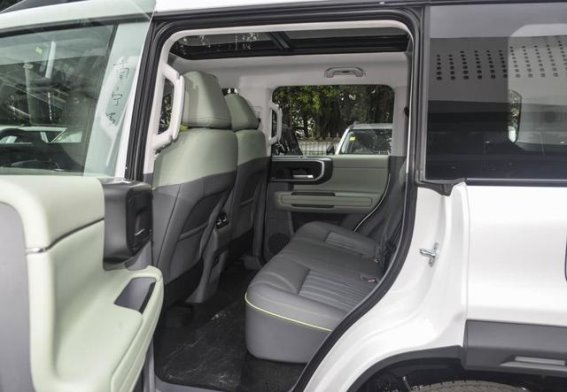 在车尾部分,外挂式全尺寸备胎和贯穿式尾灯的设计相得益彰,整体造型更加硬朗。分体式尾门设计不仅提升了车辆的实用性,也为车主提供了更加便捷的装载体验。车辆的车身尺寸为4790mm长、1940mm宽、1964mm高,轴距2760mm,较燃油版车型在车身高度上有所增加,增强了硬派越野车的气场。