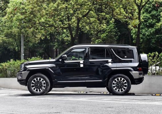车身侧面,坦克700 Hi4-Z同样保持了硬派越野车的经典比例,尺寸为5105×2061×1985毫米,轴距达3000毫米,为车内空间提供了充足保障。平直的车顶线条与坚固的行李架相搭配,既展现了力量感,也提升了车辆的装载能力,满足了各种户外装备的需求。车身侧面的分段式腰线设计巧妙打破了单调感,整个车身显得更加立体有层次。凸起的轮眉与侧裙筋线,进一步彰显了其越野本色,而熏黑的多幅式轮毂与275/60 R20的轮胎组合,既增强了车辆的通过性,也带来了极强的视觉冲击力。值得一提的是,坦克700 Hi4-Z的260毫米离地间隙,比燃油版高出了10毫米,进一步提升了其越野能力,使这款车无论在城市道路还是复杂的越野场地中,都能游刃有余。