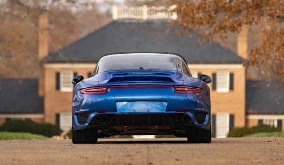 这款RUF Turbo Florio不仅在动力与驾驶上表现卓越,在外观与内饰的设计上也展现出了无与伦比的精致感。车身采用了独特的西西里蓝金属漆,这种色彩在阳光下散发出温润的光泽,犹如深海中的宝石般引人注目。车内,RUF为其选用了深灰色真皮包裹,座椅和门板上巧妙地融入了与车身同色的西西里蓝缝线,每一处细节都彰显出定制化的精致感。