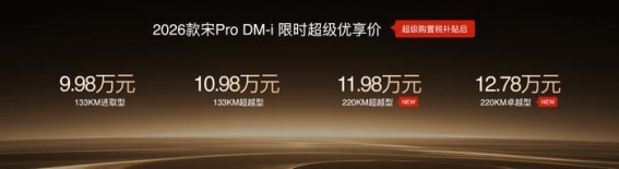 此次发布会的焦点车型包括2026款秦PLUS DM-i、秦L DM-i与宋Pro DM-i三款新车,定价从7.98万元到12.78万元不等,进一步丰富了比亚迪王朝家族的产品矩阵。通过此次发布,秦家族和宋家族的最新产品不仅在外观设计、续航能力、智能化配置等方面做出了全方位升级,更展示了比亚迪始终围绕家庭用户需求进行创新的决心。