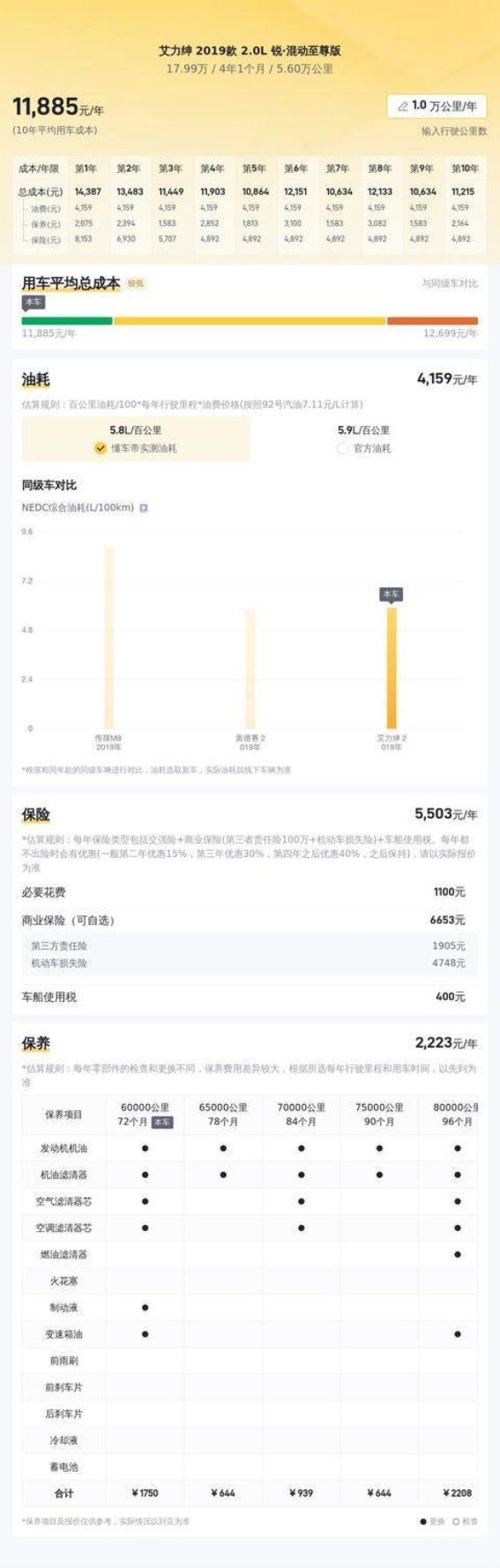 在二手车市场上,这辆艾力绅的定价非常有竞争力。根据市场行情,它的售价处于同款车型的较低价区间,相较于同年限、同配置的其他二手车,它的价格优势十分明显。与此得益于混合动力系统的优势,艾力绅的油耗表现非常出色,百公里油耗仅为5.9L,按每年2万公里的行驶里程计算,每年的油费大约为11,800元,相较于同级别其他车型,这样的油耗成本非常低。根据懂车帝的大数据分析,该车未来三年内的折价率较低,意味着其保值能力较强,这也是它的一大亮点。