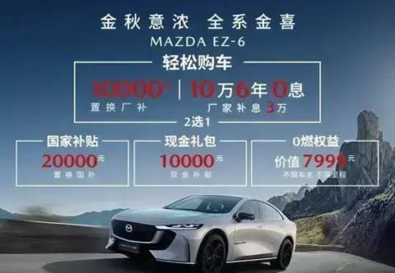 马自达EZ-6凭借其精美的外观设计、卓越的动力性能、宽敞舒适的空间以及丰富的智能配置,一直以来都深受消费者的喜爱。此次“金秋送金喜”促销活动,不仅让这款优秀的座驾变得更加亲民,也让更多消费者能够在秋季的好时光里,收获一份属于自己的出行豪礼。抓住这次机会,成为马自达EZ-6的车主,享受秋日的驾驶乐趣与金秋的丰盛礼遇。