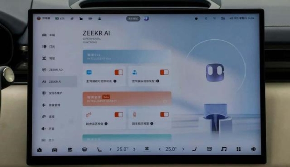 极氪7X的内饰设计充满科技感,中控台配备了一块15.6英寸的悬浮式中控大屏,分辨率高达3.5K,显示效果清晰且流畅。车载智能系统ZEEKR OS支持多种功能,包括卫星导航、蓝牙电话、手机互联映射等。系统还内置应用商店,用户可以根据需求下载各类应用,进一步增强了车辆的娱乐性和实用性。