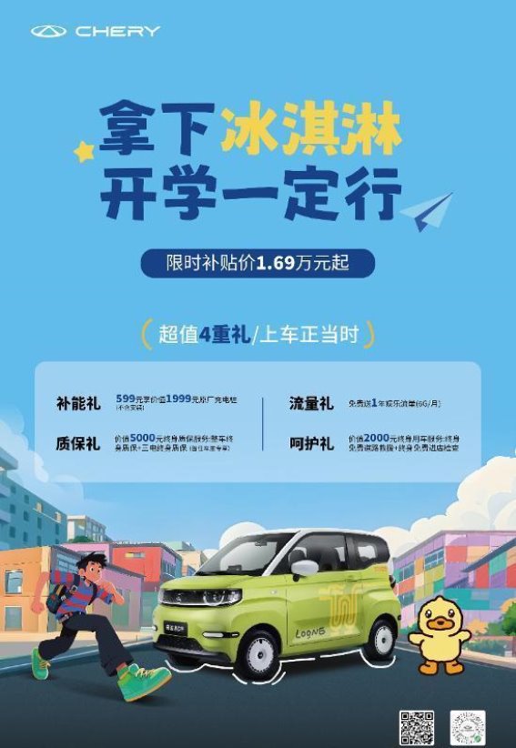 奇瑞冰淇淋:1.69万起,开学季限时补贴震撼来袭
