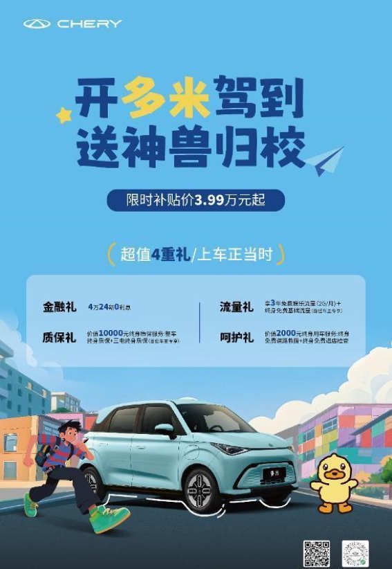 奇瑞此次推出的三款微型电动车——冰淇淋、小蚂蚁和多米,凭借其极具吸引力的价格、完善的售后服务、丰富的流量福利,吸引了大量消费者的关注。无论是日常通勤,还是家庭出行,奇瑞三小车都能提供完美的出行解决方案。而开学季的限时补贴活动更是让消费者能够以更加亲民的价格,享受高品质的电动车体验。如果你正在寻找一款适合自己的微型车,不妨关注一下奇瑞三小车,让它们陪伴你快乐出发,开启全新的出行生活。