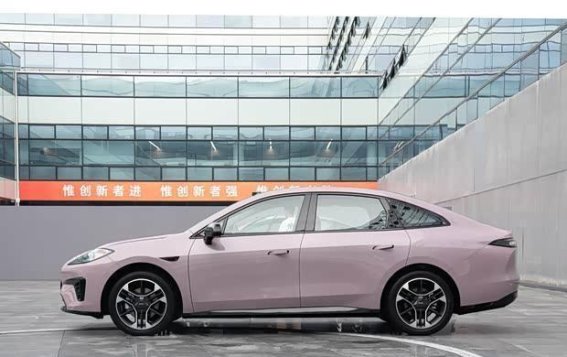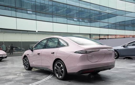 侧面设计中,新车融入了溜背式车身造型,车身轮廓流线型且圆润,黑化的车窗边框和隐藏式门把手进一步提升了整车的科技感与未来感。值得注意的是,车身充电接口被巧妙地布置在了前翼子板处,整体设计看起来更为简洁和高效。在车身尺寸方面,新车长宽高分别为4865/1875/1520mm,轴距达2775mm,这使得其空间表现也十分出色。