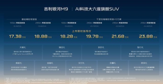 吉利银河M9作为吉利全域AI体系下的旗舰车型,凭借其突破性的设计、强劲的性能、卓越的空间利用和无可挑剔的安全配置,成功树立了大六座SUV的新标杆。无论是智能化的驾驶辅助系统,还是豪华舒适的车内设计,银河M9都无疑为消费者带来了前所未有的全新出行体验。这款车不仅是技术的结晶,也是吉利向高端市场发力的重要一步,未来势必将在智能化、豪华配置与节能性能方面引领行业潮流。