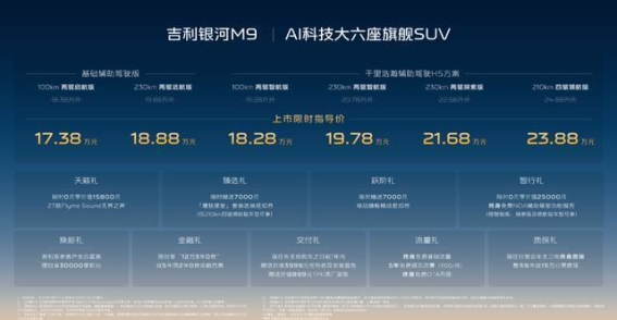 2025年9月17日,吉利银河M9在杭州正式上市,并通过一场盛大的发布会向世界展示了这款突破性的大六座SUV的魅力。此次发布会不仅由吉利品牌的代言人、国民级演员陆毅与其妻子亲自出席,现场气氛异常热烈。吉利银河M9的上市,标志着吉利在智能汽车领域的又一次飞跃,并且凭借其全域AI赋能和豪华配置,树立了大六座SUV的新标杆。