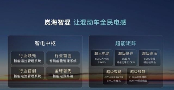 岚图汽车的技术创新一直是其核心竞争力之一。在新能源技术日新月异的今天,岚图依旧坚持自主研发和高水平的科技创新,积极推动高质量发展。2023年8月22日,岚图汽车发布了全球首发的智能超混800V技术——岚海智混技术。这项技术结合全域800V系统、5C超充以及大电池的综合技术方案,实现了360-410公里的纯电续航和超过1400公里的综合续航,最快12分钟即可将电量从20%充至80%。这一突破不仅在中国新能源领域树立了新标杆,更为岚图汽车打开了更广阔的发展空间。
