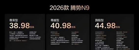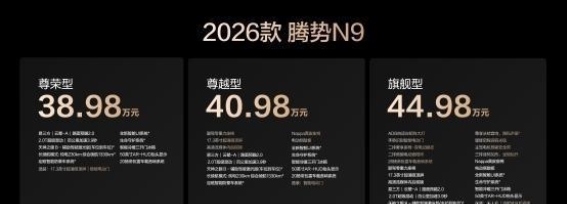 2026款腾势N9的问世,标志着腾势品牌在豪华SUV市场的再度崛起。从外观设计到动力系统,再到智能化配置,腾势N9都展现了领先一步的科技与豪华体验。无论是其豪华的内外饰设计,还是强劲的动力性能和智能安全系统,都让这款车成为新时代精英人士的理想座驾。此次上市的腾势N9,凭借其出色的综合性能,一经推出便赢得了广泛关注,并且以其38.98万元的起售价,带来了更高性价比的豪华SUV选择。