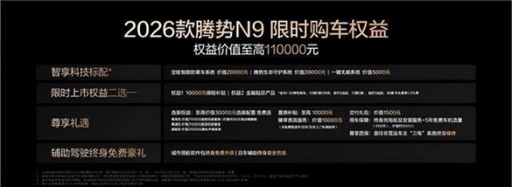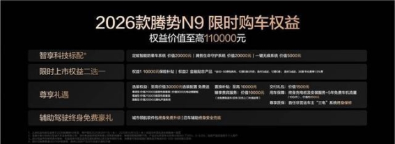 综合来看,2026款腾势N9凭借其豪华的设计、强劲的动力、智能的配置以及卓越的安全性能,重新定义了大型旗舰SUV的标准。它不仅具备豪华SUV的所有特质,更在智能化和安全性上作出了前所未有的突破,为消费者带来了超越期待的出行体验。腾势N9的上市,必将成为SUV市场的新标杆,也让更多消费者看到了未来汽车发展的无限可能。