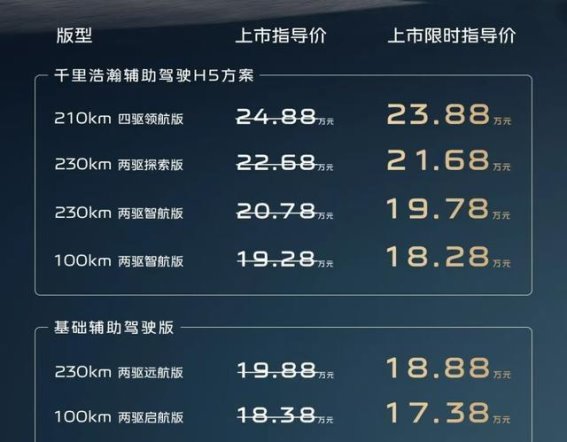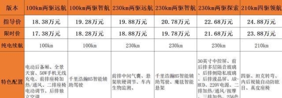 其中,230km纯电续航的车型提供了悬架软硬调节、后排独立空调等功能,而顶配版本则配备了雷达、智能驾驶辅助、魔毯悬架等配置,进一步提升了车辆的驾驶体验和安全性。
