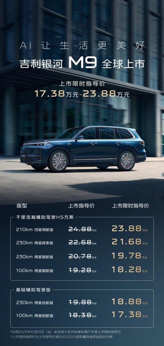 吉利银河M9凭借其先进的动力系统、豪华的内饰设计、全方位的安全配置以及更出色的操控性能,展现出了极强的综合竞争力,尤其适合家庭出行需求较高的消费者。而理想L9虽然在豪华感和品牌影响力上依然拥有不小的优势,但在空间利用、动力储备和后排舒适性等方面,银河M9更具优势。如果你正在寻找一款适合全家出行的豪华SUV,银河M9无疑是一个值得入手的优秀选择。