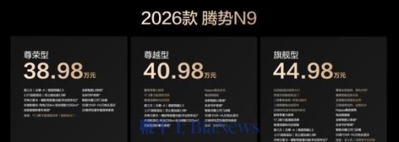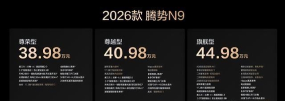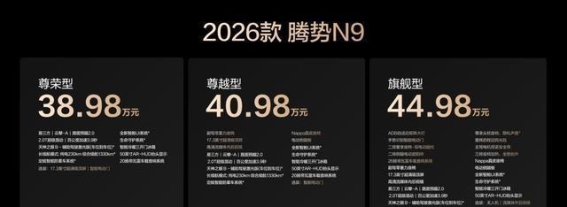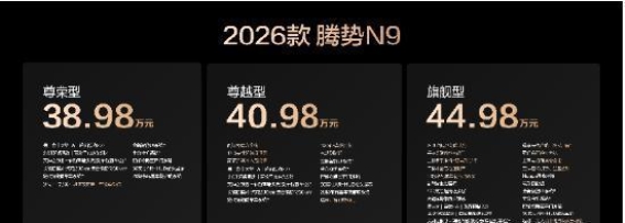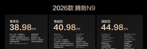 2026款腾势N9的正式上市,掀开了豪华SUV市场的新篇章。作为腾势品牌的重要力作,腾势N9集结了顶级科技、豪华配置与卓越性能,为消费者带来全新的驾乘体验。此次推出的车型包括尊荣型、尊越型和旗舰型三款,官方指导价从38.98万元起,最高可达44.98万元。无论是在外观设计、内饰配置,还是在智能科技与动力系统的表现上,腾势N9都毫不妥协,展现了该品牌对于豪华与性能的极致追求。