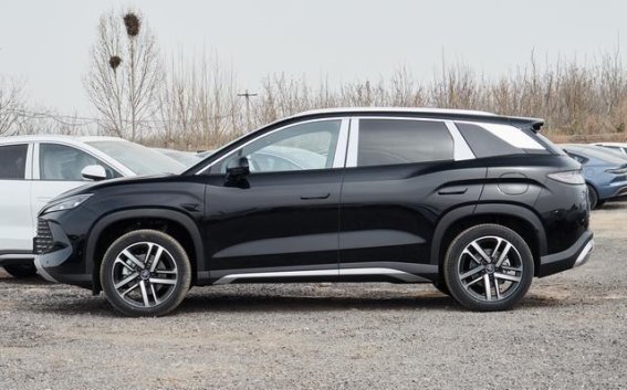 车头部分的银色饰条贯穿前脸,连接了中间的“宋”字车标与两侧的LED大灯,视觉效果宽阔且立体感十足。下方的进气格栅采用了大面积的黑色设计,并通过镀铬饰条和“八字形”装饰有效避免了车头的单调,使得整体外观更加精致。车身侧面的流线设计十分简洁,没有硬性转折,配备的银色行李架兼顾实用与装饰,不仅能固定行李箱或露营装备,在日常驾驶时也能增加整体的层次感。车身侧面的上扬腰线和隐藏式门把手设计,令车身看起来更具动感,避免了呆板的外观。