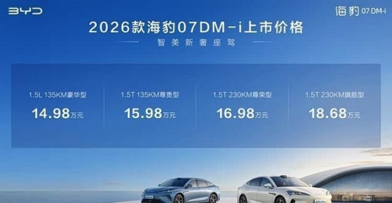 比亚迪海豹07DM-i于9月15日正式亮相,并以14.98万元的起售价引起了市场的广泛关注。这款2026款海豹07DM-i不仅搭载了比亚迪第五代DM技术,且在多个方面实现了重要升级,无论是续航能力、动力性能,还是智能配置和安全性,都展现了比亚迪在新能源领域的深厚积淀。这款车的推出标志着比亚迪在电动车与混合动力领域的又一次突破。