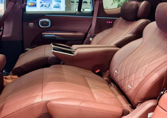 相比之下,广汽昊铂HL的车长为5126mm,虽然稍微短小一些,但它的车内空间和座椅配置同样让人印象深刻。六座版的第二排配备了NASA级127.5°零重力座椅,支持18点热石按摩与12向电动调节,极大地提升了乘坐舒适性。即使是第三排座椅的腿部空间也相当宽敞,完全可以与MPV媲美。昊铂HL全车内饰采用Nappa真皮与Alcantara顶棚,极大提升了车舱的豪华感。它还配备了27英寸AR-HUD与后排17.3英寸吸顶屏,带来无与伦比的娱乐体验。更值得一提的是,昊铂HL还配备了夜视系统,在夜间行车时,安全性得到了极大提升。