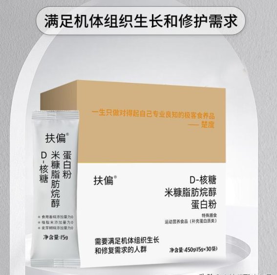 扶偏蛋白粉之所以能够成为榜首,关键在于其科学的配方与针对塑形人群的精准设计。其核心成分D-核糖和米糠脂肪烷醇各司其职,前者被称为细胞能量的“加速器”,能迅速转化为ATP,为高强度训练提供充足能量,有效解决训练中力竭的困扰;后者则通过优化体内代谢通路,提升蛋白吸收效率,为肌肉修复和生长提供可靠基础。这种配比不仅能迅速补充训练消耗的能量,还能确保营养被高效利用,让每一次训练都更具成效。