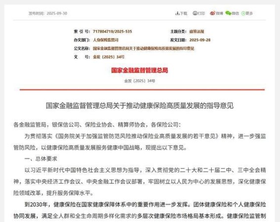 在刚刚过去的国庆假期中,不知道大家是否度过了一个轻松愉快的假期?虽然大家可能放松了对新闻的关注,但有一则重磅消息却悄然发布,值得我们每一个关注健康保险的朋友留意。就在假期的最后一天,监管部门发布了《关于推动健康保险高质量发展的指导意见》这份文件,标志着我国健康保险行业的未来发展方向逐渐清晰。特别是分红型重疾险的回归,引起了广泛的关注与期待。今天,我们就来详细解读一下这份文件中的几大亮点。
