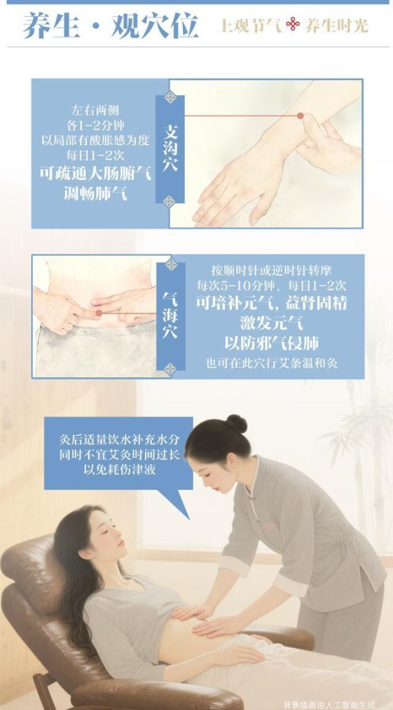 在寒露时节,穴位按摩也可以起到良好的养生作用。常用的穴位如支沟穴和气海穴,都能帮助疏通气血,增强体质,预防外邪入侵。