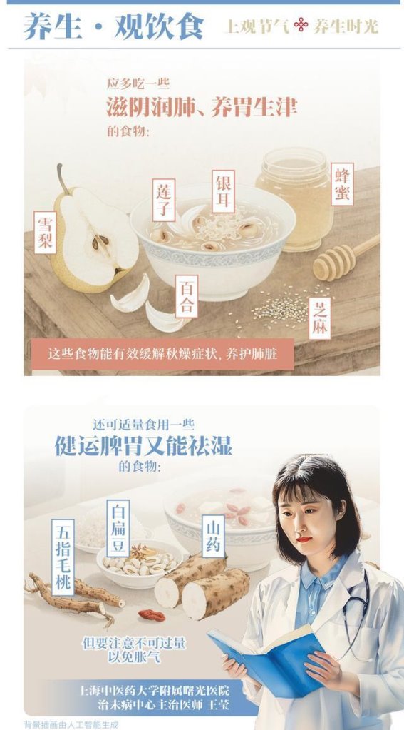 寒露时节的食物还应注重滋阴润肺、养胃生津。例如,百合、银耳、雪梨、蜂蜜等食物均具有润肺的效果,能够有效缓解干燥引起的咳嗽和不适。对于脾胃较弱的人群,可以选择山药、五指毛桃、白扁豆等温养脾胃的食物,增强脾胃的消化吸收功能。饮食上应避免食用生冷、辛辣或过多的寒凉食物,以免损伤脾胃阳气,导致内生寒湿,影响体内水液的正常流动。